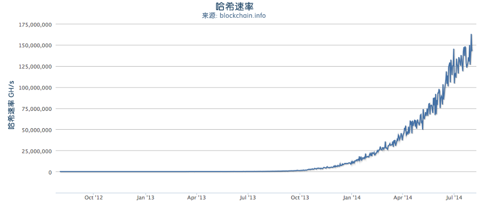 比特币挖矿是一个极富竞争性的行业。自从比特币存在开始,每年比特币算力都成指数增长。一些年份的增长还体现出技术的变革,比如在2010年和2011年,很多矿工开始从使用CPU升级到使用GPU,进而使用FGPA(现场可编程门阵列)挖矿。在2013年,ASIC挖矿的引入,把SHA256算法直接固化在挖矿专用的硅芯片上,引起了算力的另一次巨大飞跃。一台采用这种芯片的矿机可以提供的算力,比2010年比特币网络的整体算力还要大。
